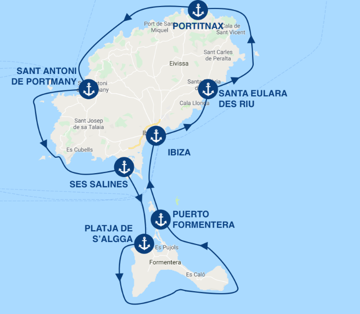There are several marinas in Ibiza: the Club Nautic, Sovren, Ibiza Magna and the Botafoch marina. We recommend the last marina, where the cleanliness and quality of the facilities are excellent. It is located just outside of the crowd of the old town, which is perfect for resting before starting your cruise.