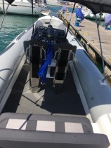 It is the perfect compromise between performance, confort and design. Its line design is perfect, you can fit 8 pers on board with confortable seats, and enjoy the sun during the day on the nice sundeck.