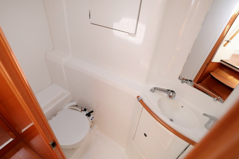 This boat is equipped with a Semi-battened large sail and a Furling genoa. It has the following equipment: Auto-pilot, TV, Speakers, Wifi and internet, Deck shower.
