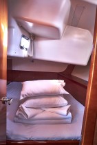 This boat is equipped with a Furling mainsail and a Furling genoa. It has the following equipment: Auto-pilot, Bow thruster, TV, USB plug, Deck shower.