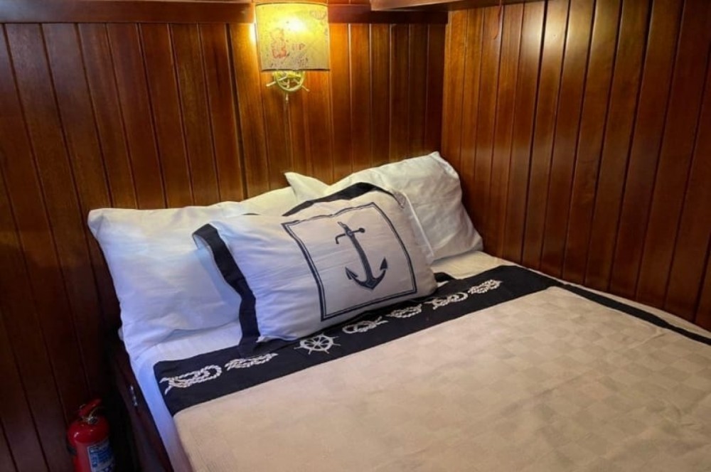 There is a professional crew onboard. They have their separate cabins and bathrooms.The captain and the crew of this yacht are highly trained and dedicated to taking care of guests’ safety and comfort. They will provide a full service; cooking, cleaning, serving and arranging daily activities. The crew instinctively know when guests require their services and discreetly withdraw when privacy is preferred.
