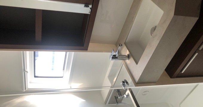 This boat is equipped with a Full-battened mainsail and a Furling genoa. It has the following equipment: Autopilot, Speakers, USB, Stern shower, Air conditioning, Bluetooth connection.