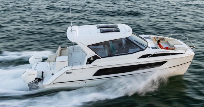 Superba barca a motore a noleggio da Cannigione. Questa Aquila 36 del 2022 è una barca ideale per le vacanze con la famiglia o con gli amici.