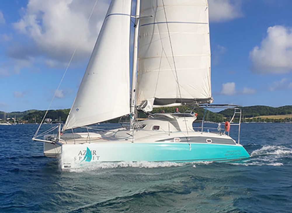 An ultra-light, very fast boat, energy-autonomous thanks to its 4 solar panels! With its low draft (0.90 m), it is the ideal companion for sporty or relaxing sailing. We love to enjoy its exceptional comfort with its 4 cabins (2 doubles including 2 singles).