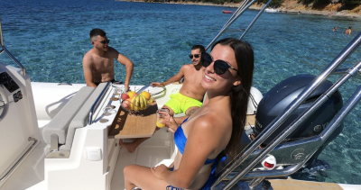 "New Boat" Welcome aboard "Ghjulia" our brand new Tempest 700 equipped with a latest generation 225hp 4t Yamaha! New line, new equipment, this brand new 2021 vintage will surprise you! real pilot seat with footrest, unrivaled passage at sea... etc. Best Seller of the brand, this vessel is approved for 16 people in addition to its large storage lockers. We allow a maximum of 11 people on board to optimize your comfort. Set sail for your dream destinations: Ostriconi / Désert des Agriates / Malfalcu / Saleccia / Lotu / Girolata / Porto / Calanches de Piana / Reserve de Scandola Etc. Equipped with full options: - Dining table. - Shower - Stainless steel roll bar. - Combined GPS/Depth sounder. - Electric windlass. - Sun awning. - Sun lounger. - Rear bathing platform. - Swimming ladder. - Electric control. - Navigation lights. - Footrests - Pilot seat Fuel capacity: 220 liters. Possible times depending on availability: - Day : 8H 9H 10H 11H *Return 8 hours later. Additional options: - Inflatable paddle: 40 euros. - Portable Bose speaker: 20 euros. - Cooler: 10 euros - Parasol: 5 euros - Beach games: 5 euros. - Towed buoy: 20 euros. - Wake Board: 30 euros. - Water skis: 20 euros As a professional in boat rental, we provide you with our experience and know-how to ensure you have a quality stay at sea. Rent your boat between individuals but with the advice of a navigation professional! *The skipper and the options are additional to your rental and must be paid on site, on the day of your pick-up. main. See you soon.