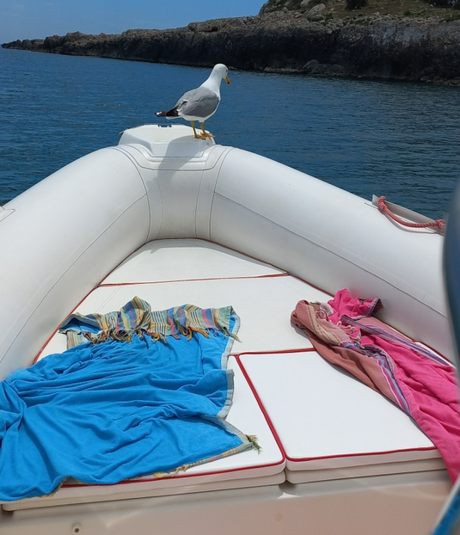 Very comfortable and spacious dinghy, approved for 22 people, it is ideal for day trips for up to 8 adults. With large cushions at the stern and bow, equipped with a powerful 250 HP engine, awning, fridge, ladder, fresh water shower, radio with USB socket, 12V sockets for charging mobile phones, powerful Bluetooth speaker. It will be possible to visit the splendid coastal areas of Syracuse and dock in some wonderful coves that can only be reached by boat. For those who love diving into the seabed, there is the possibility of snorkeling and underwater photography (with equipment provided) in the wonderful seabed of the Plemmirio marine protected area. The dinghy is located in the Fontane Bianche area at the Ognina tourist port where boarding will take place.
