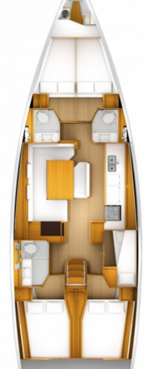 Este Sun Odyssey 519 está equipado con 3 aseos con ducha