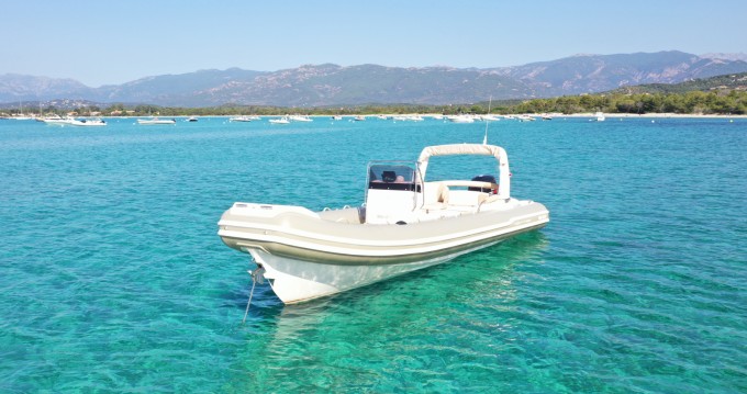 Ce bateau semi rigide de 7m40 est idéal pour accueillir 10 personnes à son bord pour vos journées de bateau à la découverte du sud de La Corse. Pour votre confort à bord, le bateau est équipé d'un réfrigérateur extérieur avec un évier, d'une table, d'un taud de soleil et d'une douchette.