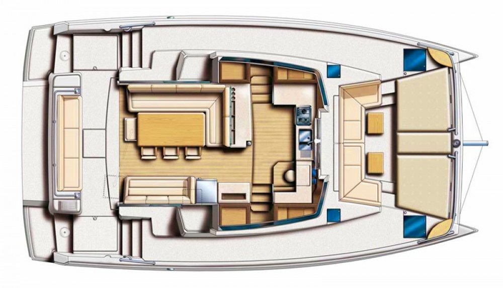 Catamaran for rent from Procida. This Bali 4.1 built in 2020 offers excellent quality/price for a cruise of a few days or a few weeks. The boat has 5 comfortable cabins and a boat capacity of 11 people. With a total length of 12 meters, it will be your best ally to spend an extraordinary holiday on the water around Procida For your comfort, Summertime (WM, Inverter) has 4 with shower This boat is equipped with a Full batten mainsail and a Furling genoa. It has the following equipment: Autopilot, Bluetooth connection. If you have any questions about the boat or the rental conditions, you can send a message via the Samboat platform. A SamBoat consultant will answer your question and offer you our best rates.