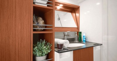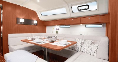 This boat is equipped with a Furling mainsail and a Furling genoa. It has the following equipment: Autopilot, Bow thruster, Speakers, USB, Stern shower, Stern platform, Bluetooth connection.
