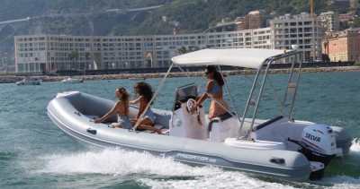 Predator dinghy of 5.99 m approved for 7 people with 40/70 hp Yamaha engine without a license, with shower, stereo, awning and ladder. If interested, other dinghies of the same type may be available