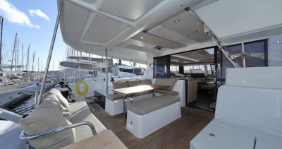This boat is equipped with a Full batten mainsail and a Furling genoa. It has the following equipment: Auto-pilot, Outboard engine, Speakers, Deck shower, BBQ, Plancha, Electric winch, Outdoor fridge.