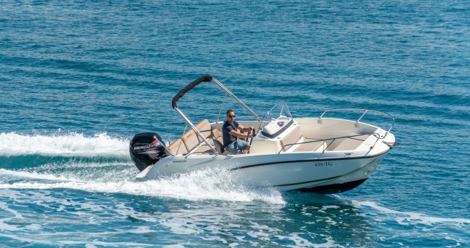 This boat is our favorite all purpose speedboat. It is perfect for all kinds of use, no matter if you plan on renting it for a week to explore the Adriatic, or for a day to go crazy with water sports, the 605 Activ Open will not disappoint you. Fitted with 150 hp Mercury EFI outboard it has amazingly low fuel consumption at cruising speed. This boat is available for daily rentals as well as longer ones. SKIPPER: It can be rented with or without a skipper The cost of a skipper is not included in the price displayed. Renter must possess and present a valid boating permit together with an acceptable form of photo ID (i.e. national ID card, passport, or driver’s license) if renting bare boat. FUEL: The rental fee does not include fuel expense. The vessel is provided with a full tank of fuel and must be returned accordingly. Or, if you prefer, our staff may be called upon to fill the tank for you when you arrive.