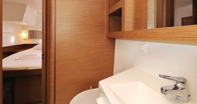 This Lagoon 42 is equipped with 4 heads with a shower.