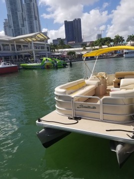*The rates include gas. * cooller with ice * Floating mat Today , pontoon boats are one of the most popular types of boats in the world. They are also very comfortable and easy to drive which offers a great walk and an unforgettable walk along our beautiful beaches. The 2020 Godfrey Marine Sweetwater 2486 combines comfort and luxury with flexible hand-stitched vinyl; The boat is equipped with a stereo system with AUX cable, bluetooth, a small table and a Bimini top for much shadow; It can also be easily folded for sun lovers. We provide a refrigerator with ice, safety jackets and a boom box with captain upon request.