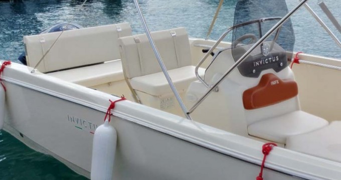 190 FX is the new entry level boat of the FX series and it is available in our boat charter. Invictus 190 FX is designed to be swift and agile boat, without giving up the solid structure of the vessel. It has specious, wide design which offers unbelievably a lot of space for a boat this size. Wide bow bench can easily be converted into a sun deck and the modernly designed bimini is providing the much needed shade for relaxation. The bimini top is also easily dispensable due to new genoious design. 190 FX, being a part of the Invictus Yacht family, holds the benefits of all the other Invictus boats. This premium boat design makes the Italian boat building brand standout in the boating industry. The original inovative design of the Invictus boat with the attentiont to every detail on top of perfect finishing. This boat has every reason to be loved and enjoyed.
