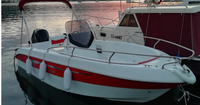 This 2019 Salmeri Syros Open 5,5m is ideal for familiys or group of friends who want to relax, enjoy and discover beautiful Croatian coast. It has Mercury 115 HP engine and can easily accommodate up to 7 people. The boat is equipped with bimini awning, bathing ladder, deck shower, radio, USB socket and full safety equipment on boat. Also has bow sundeck and aft sundeck what gives you great comfort. We are located in small place Vinišće near Trogir but we can also deliver you boat. You can rent a boat with or without skipper. Renter must have valid licence. Fuel is not included in the price.